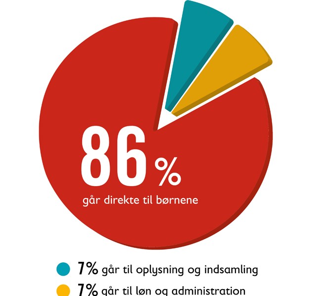Pengene går til at hjælpe de mest udsatte børn – både i Danmark og ude i verdens konfliktområder.